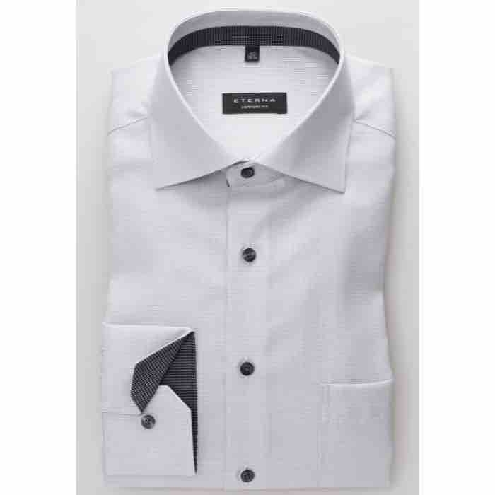 Eterna skjorte.Model: Blackline / comfort fit = Bred model med 1 brystlomme..Farve: Lys grå med flot stuktur.Kvalitet: 100% bomuld – NON IRON = STRYGEFRILevering: 2-5 dage.
